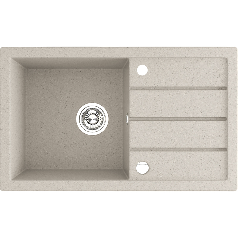 Teine on 1-kausiline valamu koos kraanikaussiga standardmõõdus 48×79 cm – kraanikauss sobib ideaalselt tööpinna pikenduseks.