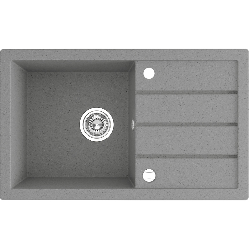 Teine on 1-kausiline valamu koos kraanikaussiga standardmõõdus 48×79 cm – kraanikauss sobib ideaalselt tööpinna pikenduseks.